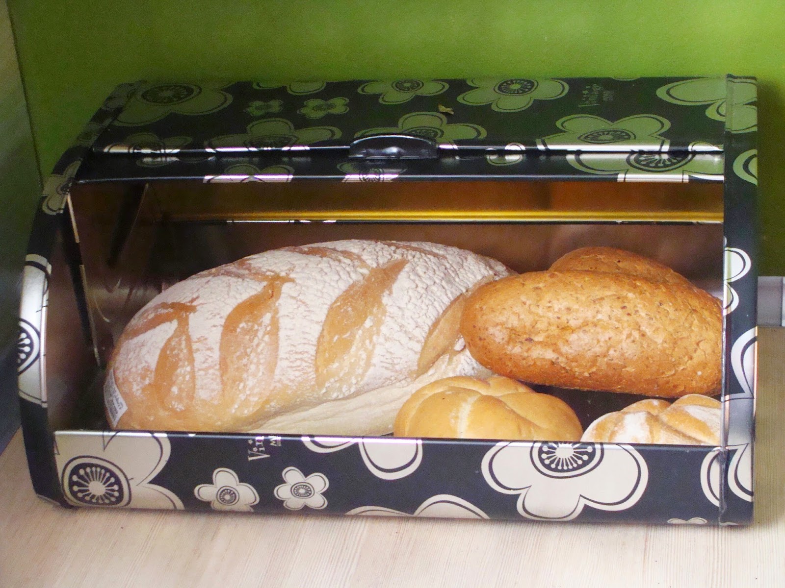 Chlebak jest w moim domu od miesiąca i ja cały czas jestem nim zauroczona, zresztą przykuwa on uwagę wszystkich odwiedzających mój dom, chlebak jest w dwóch wersjach kolorystycznych ja wybrałam czarny w srebrne kwiaty bo fantastycznie odbija mi się na tle zielonej ściany i wspaniale pasuje do całego wystroju kuchni jeśli chodzi o wykonanie to jest on bardzo starannie wykonany choć moim zdaniem z troszkę cienkiej blachy, ale ostatecznie nikt się nim nie bije wiec też to w niczym nie przeszkadza, najważniejsze możemy go macać, głaskać i palce nam się nie odbiją, a jeśli nawet to wystarczy tylko przetrzeć ściereczka i jest jak nowy. Chlebak jest też raczej produktem dla większych rodzin bo jest sporych rozmiarów i bez problemu mieści się w nim cały bochenek chleba oraz pięć bułeczek, a nawet drożdżówka się zmieści :) Przy mojej rodzinie 2+3 jest to idealny pojemnik na pieczywo i szczerze polecam zwłaszcza, że cena 44,99 zł też nie jest specjalnie wysoka.